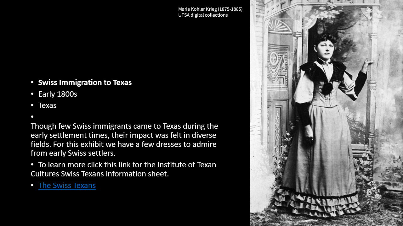 A large majority of those arriving in Texas between 1810 and 1845 were German, Swiss, and Czech settlers. Their influence can be seen in the names of cities and streets throughout Texas. Though they were not prepared for the weather conditions their cultural style adapted more to Texas lifestyle. Even Texas Vaquero style was based more on adapting to conditions than style. Styles changing based on tradition but also practicality.